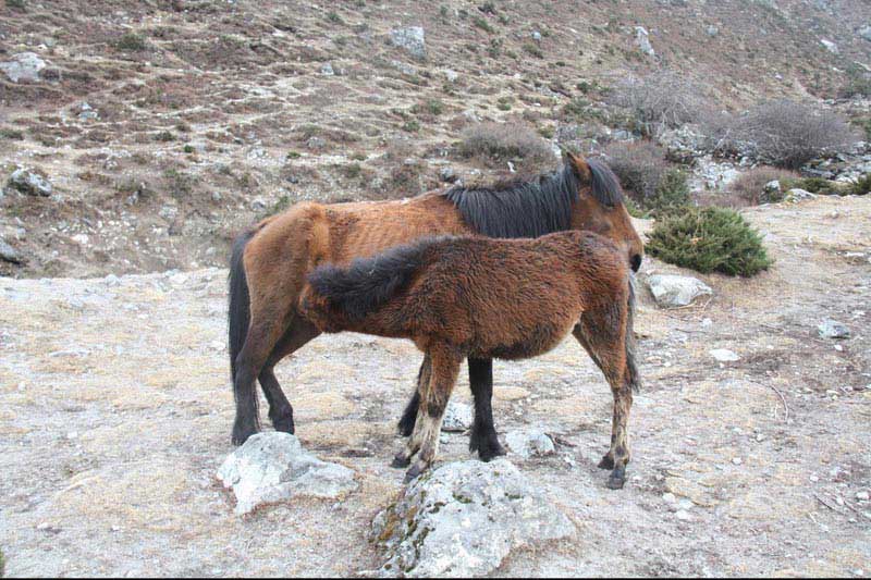 עם כל השלטים מסביב, הייתם מצפים שסוסים יציפו את משעולי הטרק על ימין ועל שמאל. נאדה. את הסוסים הראשונים בשר ודם ראינו רק בנמצ׳ה באזאר.