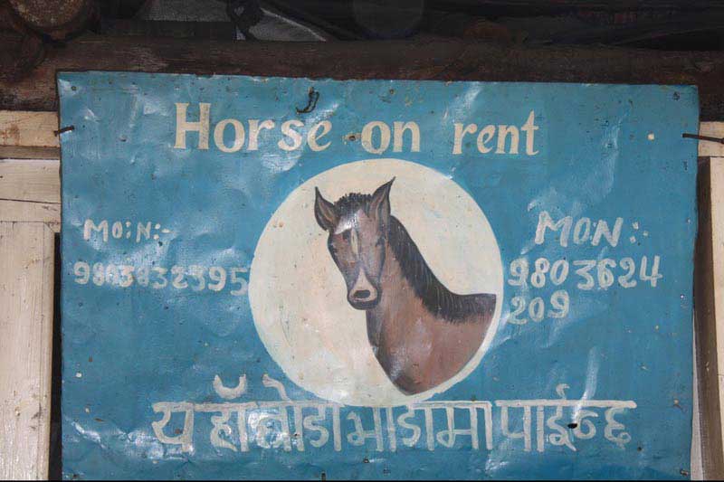 אחרי צעידה כה ארוכה, סוחרי הסוסים הנפאלים קצת איבדו את הביטחון. אולי סוסים זה לא מה שאתם מחפשים? בכל זאת, בסוף השלט... אולי...