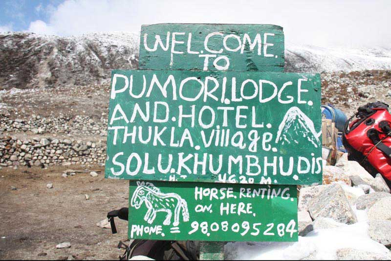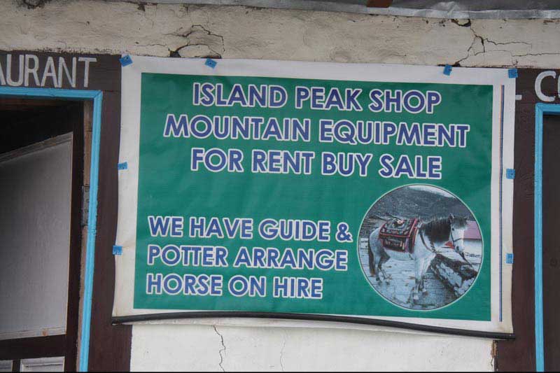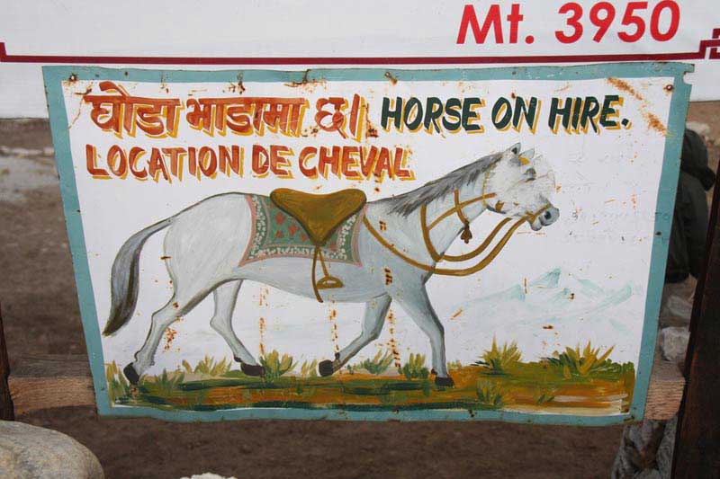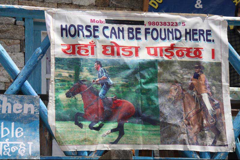 בתחילת הדרך זו היתה אנקדוטה, אבל עד סוף הטרק זה הפך לאוסף: תמונות של שלטים המנסים לפתות את הטרקרים במסלול בואכה אוורסט בייס קמפ לזנוח את ההליכה ולרכב על סוסים.