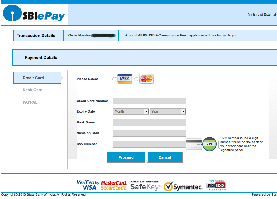 לאחר העלאת עמוד הפרטים האישיים בדרכון, תועברו לעמוד בו תוכלו לבדוק את כל הפרטים ולאשרם. לאחר האישור, תוכלו לשלם על הויזה (50 דולר, נכון לסוף שנת 2017) באמצעות כרטיס אשראי ב-SBIePay (בצרוף עמלה של 1.2 דולר) או ב-Axis Bank (בצרוף עמלה של 1.37 דולר):