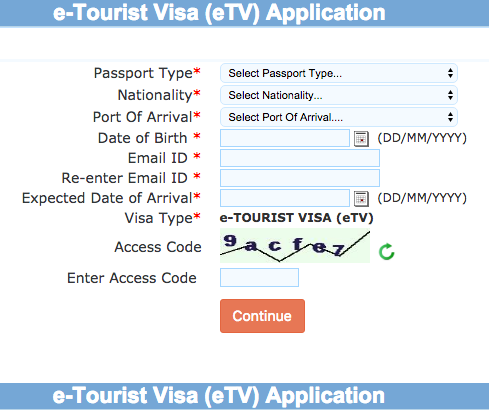 בחרו: e-Tourist Visa Application (בצד שמאל למעלה) ותגיעו לדף הבא: