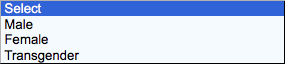 תחת מגדר (sex) ניתן לבחור בין: זכר, נקבה וטרנסג׳נדר.